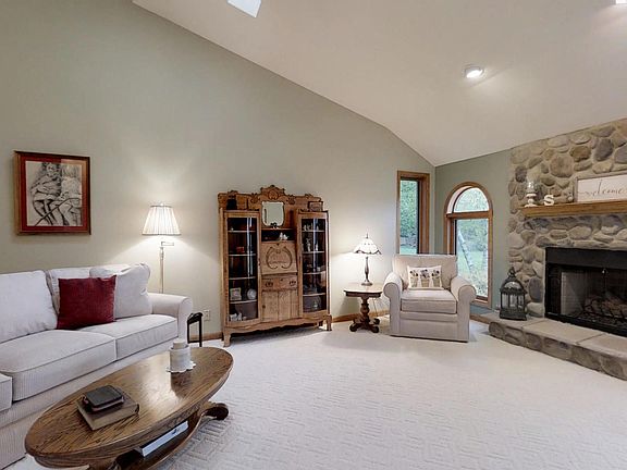 View our 3-D video tour & walk thru in real-time! This professionally manicured 1.10 acre lot is just stunning surrounded by mature shade trees & tons of perennials. This fabulous ranch home w/ 2880 sq ft of finished living space has a split floor plan & vaulted ceilings. The private master suite is on one side, the remaining beds & baths on the other. The vaulted great room has a toasty fireplace for those cold winter nights. The cozy eat-in kitchen has hardwood floors, a double oven & tons of cabinets. Full finished walkout basement w/ 4th bedroom, a full bath, dry bar & family room/rec room combo. Enjoy your private brick paver patio or concrete patio in back. Super well cared for and just waiting for you to move in! There is nothing to do here, this home is in perfect condition! You won't be disappointed!