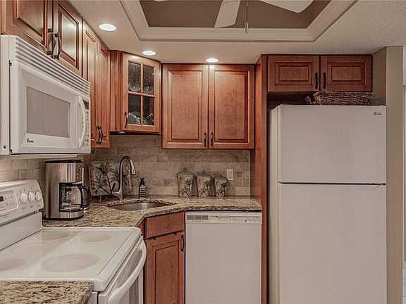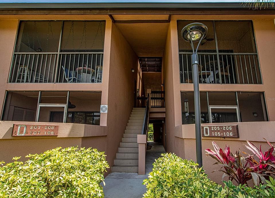 THIS HAS TO BE THE NICEST UNIT AVAILABLE!!! IMMACULATE TURNKEY, EXQUISITELY FURNISHED 2nd floor condo overlooking the pool, courtyard and shuffleboard court in the highly sought-after 55+ GATED community of Oak Forrest!! This move-in-ready beauty features tile throughout, an inside laundry closet, upscale paneled bedroom doors, modern paneled closet doors and a great private balcony with storage closet! The lavish kitchen boasts granite counters, desirable stone tiled subway backsplash, a double pantry (rare for a condo!) and rich custom cabinets with soft-close feature! The master en-suite bathroom AND guest bathroom both have granite counters! There is one assigned parking spot, but a second one could be assigned upon request, per sellers. Not in a flood zone! The low monthly HOA of $290 per month includes the water and trash! NEW ROOF ON BUILDING D! Oak Forrest is a lovely 23 acre gated community offering some fabulous amenities!! There are 3 pools, a clubhouse, BBQ area, multiple shuffleboard courts, bocce ball courts and a wonderful calendar full of social events for the active person, such as food trucks monthly at the clubhouse, numerous game nights plans - poker, dominoes, bingo etc and a happy hour/social hour at one of the pools weekly! Located within a close proximity to numerous public golf courses, parks, the public library, shopping and restaurants. Check out this impeccable beauty TODAY!!