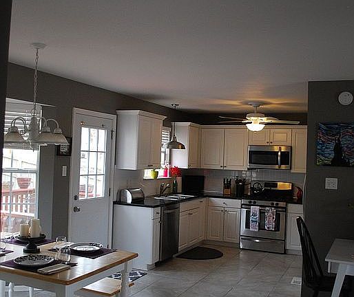 Totally renovated home! Spacious kitchen with granite countertops and new Kenmore stainless steel appliances. Open concept living area with laminate wood floors and a gas fireplace. Large master suite with remodeled master bathroom. Master bathroom has a walk tiled shower, tiled whirlpool, and a walk in closet. All four bedrooms are on second floor. (Fourth bedroom is large and would make a great exercise or entertainment or craft room!) Lots of new, beautiful landscaping and porch additions in the backyard. Two car garage in back. Washer/dryer included. Refrigerator included. New roof in 2019.
