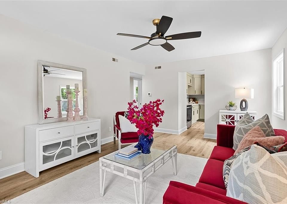 Priced UNDER APPRAISED VALUE - WOW, a WIN for you!! Appraisal, Inspection & Minor Repairs complete - buyers financing fell through unfortunately. Cute little brick ranch renovated with the modern flare within minutes/biking distance to High Point University. Trendy exterior color palette. So many NEW things! Roof, HVAC, Windows, Wide Plank LVP, Light Fixtures, Kitchen, Bathroom & more. Living room very spacious & large! Kitchen has all new cabinets, quartz countertops & appliances. Flowing into a side entrance where a laundry room & mudroom you will find. Home offers 3bdrms & 1 full bathroom. Bathroom has decorative tile tub/shower combo w/ new vanity & new toilet. With a more luxurious look & feel, you will love the wide plank flooring. Home has several closets. Backyard has fence. Storage building to convey. Plenty of parking & within minutes or biking to High Point University. Don't miss out on this cutie.