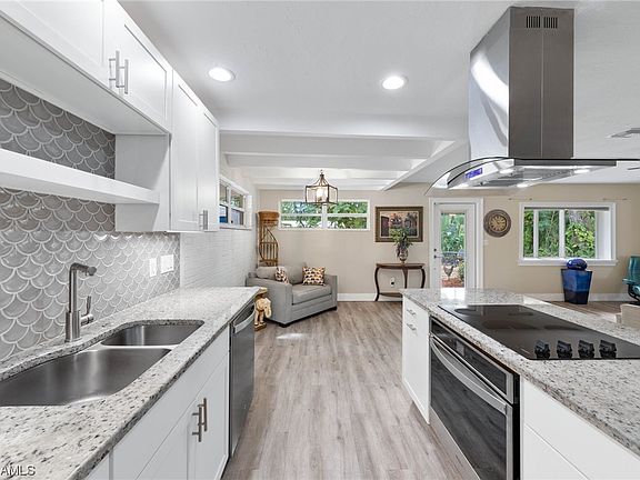 Welcome to this charming fully renovated pool home in the highly desirable Palm Lee Park neighborhood. Located off historic McGregor Blvd and moments away from Fort Myers Country Club. This gorgeous property boasts incredible upgrades. Upon entry you will be greeted with an open concept living area with newly installed vinyl plank flooring throughout and a stylish pop out window. Natural light pours into this home. The newly renovated kitchen features granite countertops with chic backsplash, genuine wooden cabinetry, and whirlpool appliances. Step into the backyard oasis, where you’ll discover a NEW POOL, with expansive paver deck and pool cage. All mechanical items have been updated: 2018 Roof, 2020 HVAC, 2020 Water Heater. Cast iron drains replaced in 2020. White vinyl fence 2020. All new light fixtures and interior doors, including a stylish barn door separating the formal dining room. French doors lead to a spacious Florida Room providing a perfect space to entertain guests. Both bathrooms have been updated as well. Located in Zone X. NO FLOOD insurance required. Nestled on a quiet street with mature landscaping and centrally located! Schedule your private showing today!