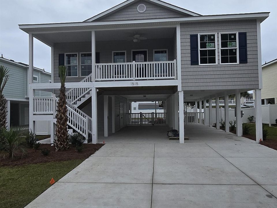 4BR / 3BA new construction raised beach home only a couple blocks from the ocean and right in the middle of all that North Myrtle Beach has to offer. Home features: 9 & 10' ceilings, master suite with double vanity and tiled shower. Kitchen with white cabinets inc 42" uppers and crown molding, granite countertops with 7' peninsula bar top, Stainless Whirlpool appliance package, large laundry room, two bedrooms share jack & jill bath and 4th BR has full bath with access from great room as well. Covered porch on front and rear of home, trex decking, white vinyl railings, large storage room on ground floor, concrete driveway with 12x25 heated pool with paver decking and privacy fencing, fully landscaped and irrigated yard. - Prime location - walk / bike / golf cart the beach, restaurants, shopping, mini golf, ice cream and nightlife. Excellent vacation rental potential.