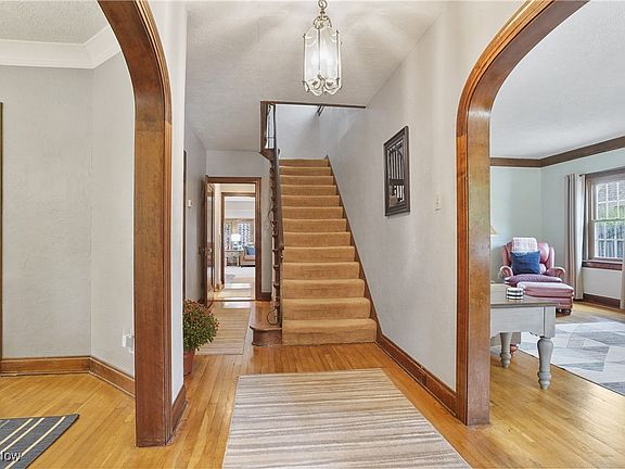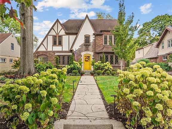 Welcome to this breathtaking Tudor-style home, boasting exceptional curb appeal that has consistently earned Akron's prestigious Beautification Award. The beautifully maintained flower beds, enhanced with lighting, bring both charm and functionality to the exterior. This home presents a perfect blend of character and comfort, showcasing timeless architectural elements such as arched entryways, classic built-ins, and original woodwork and hardwood floors. The inviting entry leads to the gracious foyer and rooms beyond. Formal living room features a fireplace w/gas start and bay window w/seating. Formal dining room with corner built-in and access to private side patio w/trellis. The kitchen offers all appliances, center island, under cabinet lighting, and built-in buffet hutch. The large family room boasts a wet bar with granite bar seating and beverage center and leads to the office/sunroom with a separate entrance to stamped concrete patio. A guest bath and an additional entrance are conveniently located. The second level hosts all four spacious bedrooms including the master with an updated bath, a main full bath (both w/heated floors), and center hall cedar closet. The large, partially finished basement offers even more living space with rec room (Nature stone flooring), wall of built-ins, glass block windows, plenty of room for storage, and plumbed for bath. 2 car garage with workbench and stairs to large stand up attic. Concrete paver patio w/firepit. Ring cameras at front of house, drive, and garage. Generator (service regularly)Additional notable improvements include all new electric (wires in walls, grounded outlets) addition of recessed and pendant lighting, addition of gate at drive (electric is plumbed), outdoor electric box for RV or electric car, all new landscaping in front/ side/back and much more. Nearby to Schneider Park, Forest Lodge, St Sebastian. Close proximity to expressways, shopping, numerous cultural opportunities.