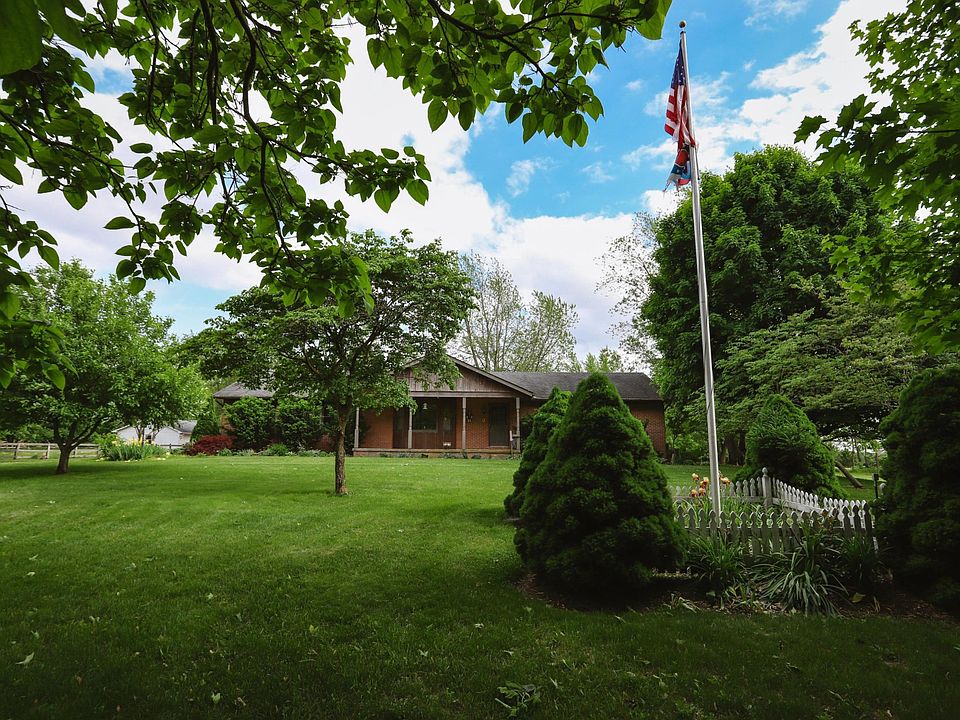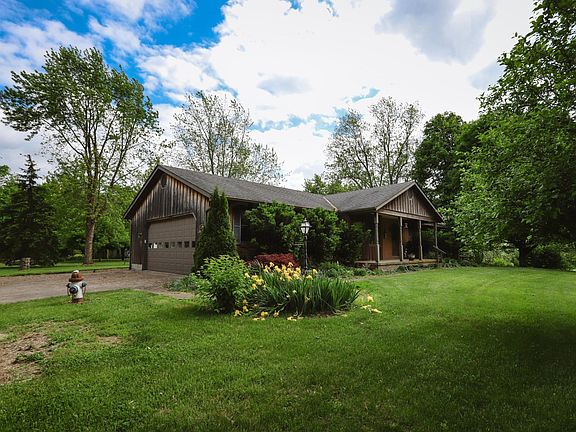 Welcome home to this lovely brick and cedar ranch home situated on 2.5 acres of land w/ a park-like setting. Enjoy the 2100 sqft heated barn w/ three stalls and fenced pasture. This unique property boasts an amazing mother in law suite finished in 2007 w/ full kitchen w/ eating sp, living rm, full bath, and private entrance w/ covered porch! The main home boasts an open kitchen & living rm w/ fireplace, nice sized bedrooms and baths, full basement w/ addit'l bedroom & more! Home has been well kept! Newer well, new gutters, LL laundry also available. 6 inch walls when constructed! This home is unique! The land is private and serene! This property is clean, well-kept and ready to go! It's just awaiting your finishing touches!