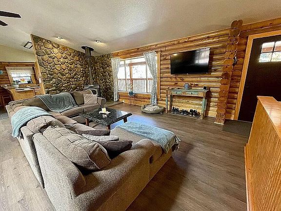 Log home nestled in the tall pines with quiet Jemez Mountain living! Located on 1.3 serene acres, partially fenced. Spacious living area with toasty woodstove; you will love the warm log interior. Kitchen has breakfast bar, beautiful wood cabinets, slate tile flooring, nice skylights and comes with appliances. 3 bedrooms, 2 full baths, plus bonus room. Large laundry room w/washer and dryer. New laminate flooring throughout. Newer (2022) electric baseboard heaters. Contractor built. Enjoy the covered wrap-around porch perfect for your hammock and rocking chairs. Large heated garage. HOA covers winter road maintenance and water. LA Net (high speed internet) available. World's prettiest 30 minute commute to Los Alamos. Seconds from hiking, fishing, and the Valles Caldera. Get it fast!
