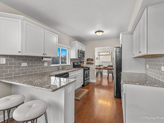 Recently remodeled 3 bed, 1.1 bath home with a large fully fenced yard in a great location! Fabulous updated kitchen with newer cabinetry, timeless subway tiled backsplash, ss appliances, granite counters including a breakfast peninsula, pantry and beautiful laminate flooring that continues throughout the main level. Immediately adjacent family room with custom shelving and access to the very private backyard with large patio and shed. Spacious living room, separate dining room with bay window and powder room complete the main level. Upstairs is a sizeable primary bedroom with feature wall and conveniently located en suite laundry and dual closets. Two additional sizeable bedrooms and a renovated full bath with custom tiled shower and newer vanity. Attached one car garage. Newer lighting, flooring, appliances, vanities and paint. Just blocks to the Fox, shopping and restaurants of downtown Algonquin and the Randall corridor, and a quick commute to 90.