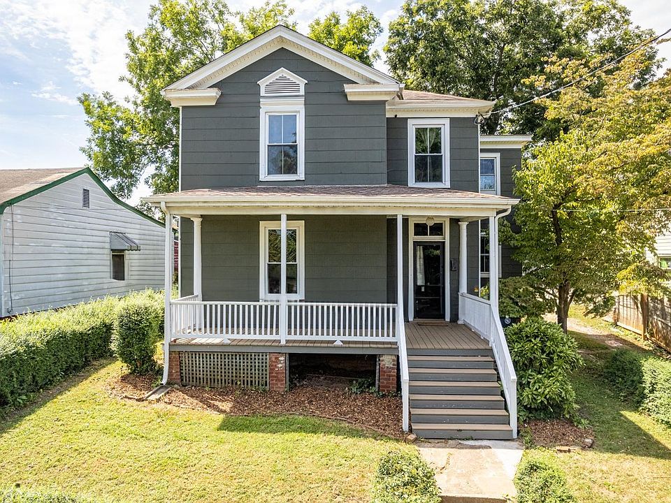 This beautifully renovated downtown historic home has all the historic details you're looking for with the updates today. Inside you will find original hardwood floors, moldings, and staircase along with updated HVAC, electrical and plumbing! The renovation additionally includes 3 completely renovated bathrooms and full open kitchen with subway tile and concrete counters. The kitchen and dining area opens on to the expansive backyard already set up for the garden of your dreams by the current owners. Don't miss the off-street parking and garage- a true rarity in downtown historic neighborhoods. This sun filled home with its high ceilings is even better in person! See it today!