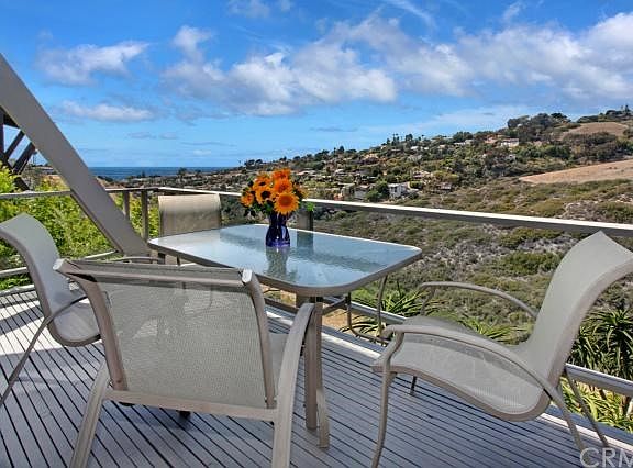 Contemporary beauty! Nicknamed the "Tree House," this home was designed by John McInnes and is a true Laguna Beach stunner! Ultra quiet location with canyon and ocean views, you can enjoy the Laguna lifestyle while being apart from all the noise and traffic. Just minutes down the hill to the Village area by walking, car or trolley, you can enjoy all the restaurants, shops, beaches and art galleries Laguna has to offer while avoiding the crowds at night to relax. Stepping through the front entry, to your 3 bedroom 3 bath home, capture immediately the views that surround you. Upgrades include a remodel that encompassing natural materials like rosewood and granite, Dacor, Bosch and GE Monogram stainless steel appliances and custom cabinetry in kitchen as well as balconies to take in your quiet surroundings and enjoy the views. Secondary bedroom is currently furnished with a massage table but a bed can be put in if desired.