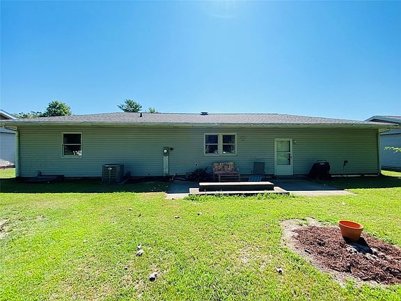 This Ranch style home has just over 1,000 square feet of living space. There are 3 bedrooms, one full bath and one half bath, living room, eat-in kitchen with appliances, and a large two car garage. The air-conditioner has been updated and the washer and dryer are also included. Outside, there is a patio and storage shed.
