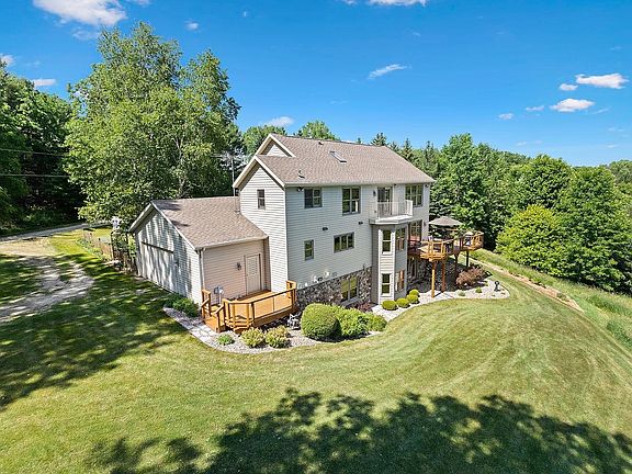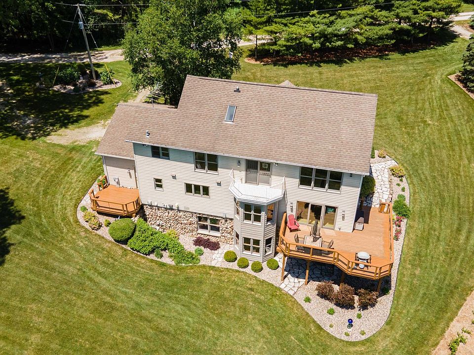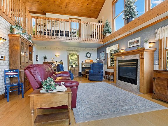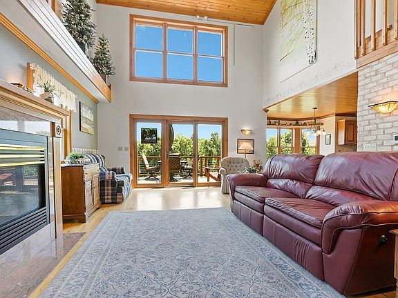 IMPRESSIVE country, waterfront, walkout 2-story nestled on 6.5 acres w/over 661' of Manitowoc River frontage PLUS a private-dead end road...WOW! Stunning features from inside to out as you tour this property. Extra 2.5 car garage for toys or workshop. 2-story great room is absolutely beautiful w/windows everywhere PLUS a upper loft. Hickory hardwood flrs, pine tongue & groove ceilings, tile flrs, gourmet KT w/huge center island, high end appliances & a 9x7 pantry..my fav! 1st flr laundry/mud rm, finished att garage, 1st-flr BR off foyer along w/half bath. Upstairs has a sensational ensuite w/your own balcony, vaulted ceiling, WIC & full bath PLUS views of the river. LL is a walkout w/sewing rm w/built-ins, full BA, fam rm w/FP & 4th BR. Endless Updates. 48 hour binding acceptance