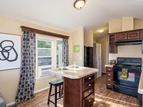Adorable, small but mighty home! Placed in a private, peaceful setting this 385 sqft, 1BR, 1 BA home has all your needs. It is placed on a large lot, with room to enjoy the outside! The park is well managed with a solid reputation. 2 storage sheds are included with the purchase. The large wooden shed belongs to the park for the homeowner's use. This shed is divided inside with two separate doors to enter and keep your storage organized. The other metal shed belongs to the seller, he is including it with the purchase! The home CAN be removed or remain in the park. The axles are without tires and are under the home. This makes it easy if the buyer is interested in relocating the home. Buyer to do due diligence on the removal of the home from the park. Space rent in $975.00 a month. Buyer is to be approved by the park manager prior to purchase. Financing possible. The sale will be contingent on the successful close of the seller's current purchase scheduled to close on 9/19/24.