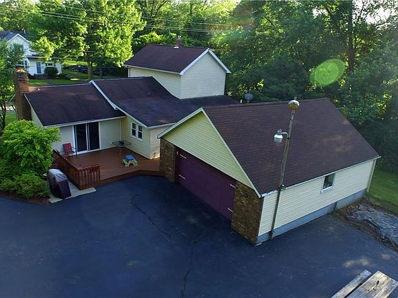 Don't miss out on this stunning, updated country farm house. Multiple additions have crafted this brick faced home into the perfect place for your growing family. A massive, rolling back yard makes for a private includes 2 lots, tree lined playground for the kids, while you relax on the extended rear patio. With an expansive, blacktop drive, parking is never an issue. Inside the home, spacious, brightly colored rooms await. The tiled foyer leads to a full bath area with oversized vanity, before ending at the dining room entrance. This carpeted focal point serves as the hub of the home; with second story, kitchen, living, and master bedroom access splitting off. The master bedroom ties to a conjoined dressing area with double vanity and walk in closet before spilling into an elegant bath, trimmed with inviting mauve walls and neutral tiled flooring. The kitchen spans the far side of the home with an array of oak colored cabinets, perched above wood trimmed, laminate countertops. A relaxing living room features both a brick fireplace along with a stylish bar area and patio access, perfect for entertaining. Upstairs, two remaining bedrooms are perfect getaways for the children. A partially finished basement includes multiple rec rooms and an additional family room. The basement also contains laundry service and home network access for instant home ethernet connections.