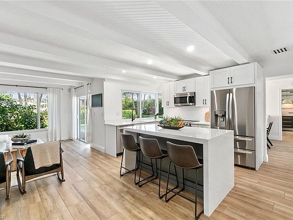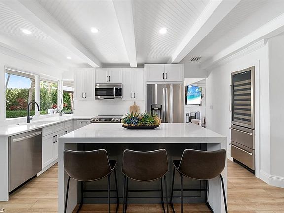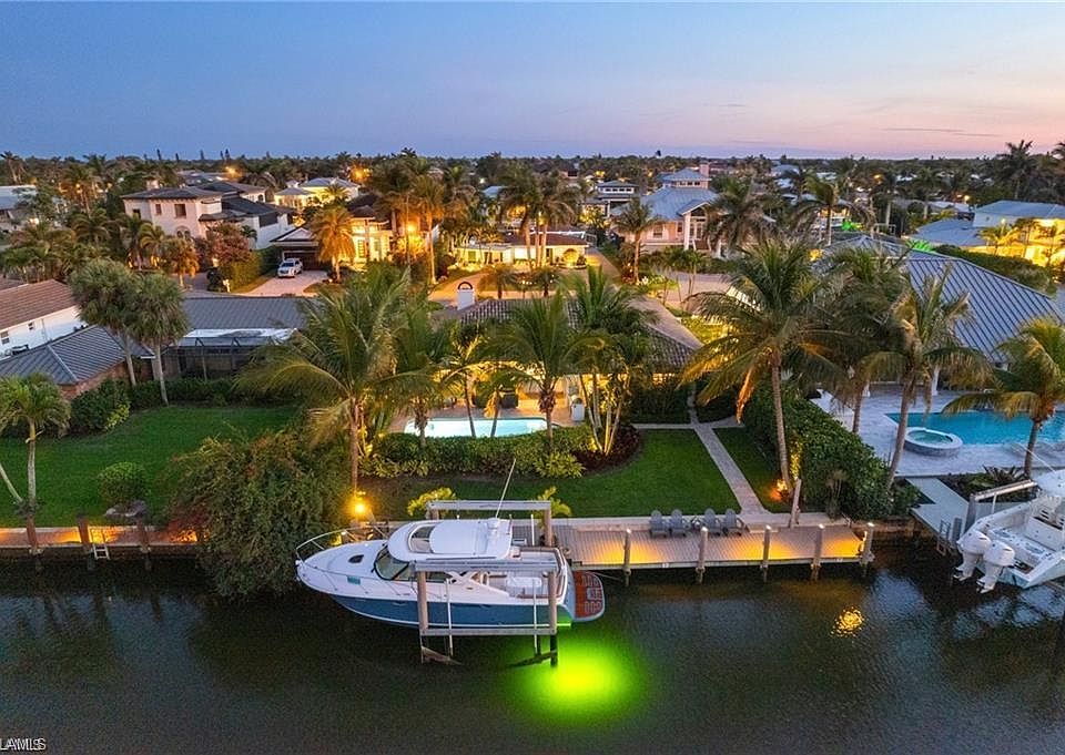 Discover the ultimate waterfront lifestyle in Oyster Bay/Royal Harbor, one of Naples’ premier boating communities. This exquisite canal-front home offers direct, bridge-free access to the Gulf of Mexico, allowing you to set sail from your own backyard. Completely remodeled and professionally designed, this 3-bedroom, 2-bathroom residence blends coastal elegance with modern luxury. Step inside and experience an open, airy layout with meticulous attention to detail. The home features custom ceilings, designer lighting, and high-end finishes, creating an atmosphere of refined comfort. The gourmet kitchen boasts premium appliances, upgraded cabinetry, and stunning quartz countertops, perfect for both everyday living and entertaining. For peace of mind, hurricane-impact windows and doors provide security and efficiency, while a Generac Guardian 22kW whole-home backup generator, powered by a 500-gallon buried propane tank, ensures uninterrupted comfort. Your private backyard paradise is designed for both relaxation and entertaining. The heated saltwater pool offers year-round enjoyment, while the custom outdoor kitchen is equipped with marine-grade cabinetry, a Blaze grill, a pizza oven, and ample counter space for the ultimate al fresco experience. A Sonance speaker system enhances the ambiance, making every moment outdoors more enjoyable.Boating enthusiasts will love the brand-new Trex composite dock, featuring a 20,000 lb boat lift and a Gem Remote Control system, allowing for effortless access to the Gulf. Whether heading out for a sunset cruise or a deep-sea fishing trip, your boat is always ready. Additional Features include Climate-controlled 2-car garage with built-in storage, Dedicated ice machine, perfect for fishing trips, Lush tropical landscaping for added privacy and beauty. This home is situated in one of Naples’ most desirable waterfront neighborhoods. Take a short walk, bike ride, or golf cart trip to downtown Naples, where you’ll find world-class dining, boutique shopping, and pristine white-sand beaches. Don’t miss this rare opportunity to own a waterfront masterpiece.