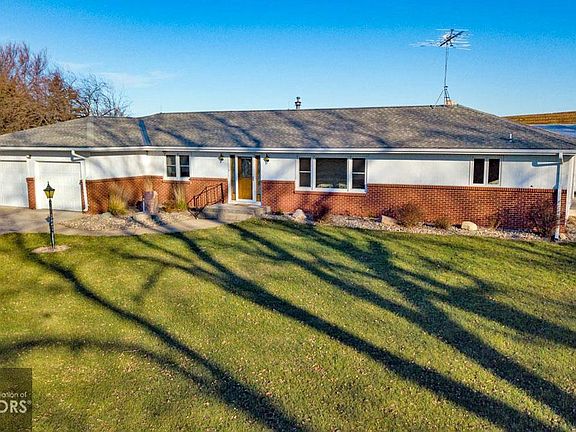 Fine Acreage Living! 3 Acres M/L with 3 bedroom ranch-style home, 2 3/4 baths, full basement and 2-car attached garage. Main floor features large living room, open kitchen, dining, great room with oak cabinets, fireplace and wet bar. Master bedroom with master bath, 2 more bedrooms and full bath. Main floor laundry and office with cabinet storage. Full basement has family room, 3/4 bath, kitchen and 2 hobby/storage rooms. 60 x 24 open front pole building, 38 x 35 machine shed with high doors, 26 x 24 detached garage, 16 x 14 shed and 4 grain bins. Property is hooked to rural water.