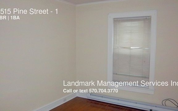 SCHEDULE A SHOWING ONLINE AT: showmojo.com/lh/c45c893066 1 BR 1 BA, can use as 2 BR. Charming/large 1st Fl Apt. front Porch,laundry Hook-ups, Hardwood Flrs. Hill Section, Available Now! Well Maintained 1st Floor Apt can use as 2 Bedroom. Front porch, walk in closet and hardwood floors. Living room combine with dinning room. Eat-In-kitchen. Shared Laundry in basement. Available Immediately, One month rent and one month security to move in. Call for appointment today to see the inside: 570-504-9722 X 0. Presented by Landmark Management Services, Inc. LID#: RB066772 Disclaimer: The information provided is to be the best of our knowledge. We are not responsible for any misprints or errors.