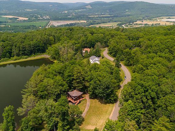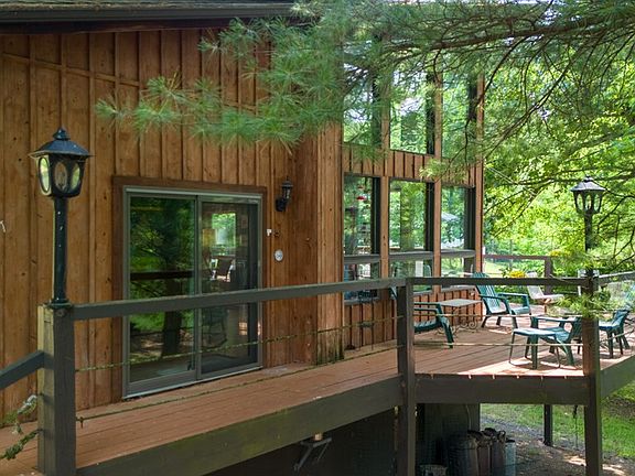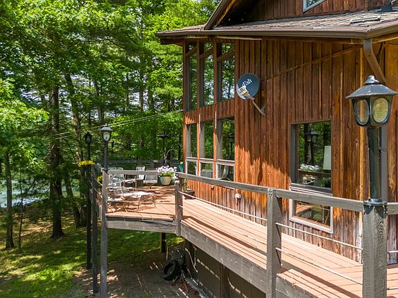 Looking for a quiet and relaxing getaway?? Maybe your able to work from home and long for that serene and picturesque setting. This custom-built chalet home is situated on 226 feet of lake frontage and is powered by both solar, electric and propane. Oak, walnut, cherry and pine are found in the interior along with floor to ceiling windows that bring the feel of the outdoors inside. A separate tiny house houses overflow or outside guests. Home is located just 7 minutes from the Robert Packer Hospital in Sayre, PA Make it your permanent residence, retreat away from home, VRBO or Airbnb. The possibilities are endless... .