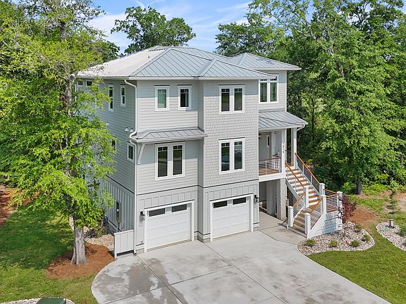 This 5BR, 4.5BA riverfront home by Michael Christian Homes is in the gated community of Preservation Point. Perched on a bluff above Cape Fear River, it offers stunning sunsets, a 3-floor elevator, chef's kitchen, spa-like primary suite, and more. Enjoy resort-style amenities, nature views, and life on the water—just minutes from downtown and shopping.