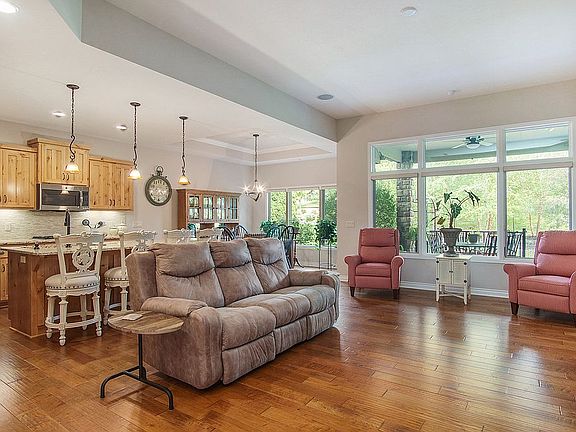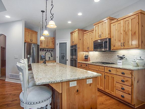 This is seriously an AMAZING villa! You are going to love all the upgrades & uniqueness about this home. When you walk in, you are greeted by tons of windows all w/ Hunter Douglas blinds, expansive ceilings & beautiful wood floors through out the open main level. The cozy fireplace graces the living room & the spacious kitchen featuring double ovens, gas stove, knotty pine cabinets, tile back splash, granite counters, & a HUGE walk-in pantry. Large master suite w/ trayed ceilings, full en-suite bath w/ dual sinks, huge closet & a unique office/desk access.The lower level boasts 2 large bedrooms, full 2nd kitchen, ample space for entertaining or a separate mother in law suite, storage space hidden away by a secret shelving unit/door, & second laundry room. Garage is over sized for added storage with garage heater that will stay. The private back yard has no rear neighbors, covered patio, fenced back yard, & amazing landscaping. This home has been maintained to the highest standards.