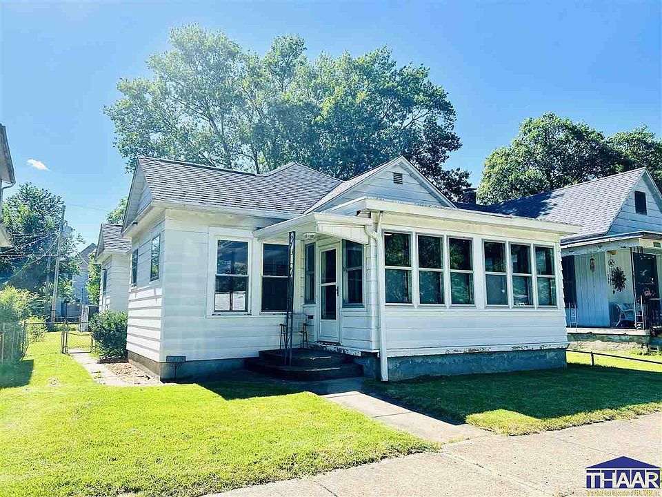 This spacious bungalow features an inviting enclosed front porch that is heated & cooled, a large living room with original woodwork & hardwood flooring, built-ins & storage throughout, a light & bright kitchen, hardwood flooring in bedrooms, main level laundry, an updated bath, a clean & dry partial basement, newer roof, a fenced backyard & a detached garage with an additional 22x16 workshop.