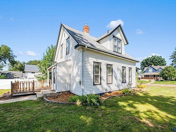 Beautifully maintained home full of original character, yet with modern updates. Hardwood floors are stunning, original stained glass in large picture window in living room. Unique main floor bath for this age of home and a main floor bedroom, or can be used as an office. Large updated kitchen with room for an eat in space, in addition to your formal dining space. Upstairs you will find 2 extra large bedrooms along with a full bath. Vinyl siding so no maintenance needed, roof that's 10 yrs old, and a detached garage with a brand new extra storage space added. New charming front porch to decorate, along with a back deck to sit and look over your very large corner lot yard. One of the owners is a licensed real estate agent in the state of SD