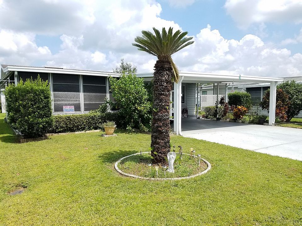 55+ Community near restaurants, hospitals, shopping centers. Huge clubhouse, pool, jacuzzi, recreation room, shuffleboard. If you are a Handyman you can restore this home with very little money. This Palm is a 2 Bedrooms, 2 Baths, open floor kitchen with a lot of new wood cabinets, laminated countertop. the master bedroom has a walk-in closet and the bath is unfinished. Enclose porch, carport, large shed, new water heater, New Air conditioner, New roof. Se Habla Espanol.
