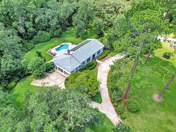 Check out the video tour and 3D virtual walk -through of this magnificent saltwater pool home on a private, 1.72 acres in Downtown Tallahassee with in-law suite, and workshop, The front yard features an expansive circular driveway, a secondary driveway to the enclosed carports, and mature landscaping. Enter the home through a gorgeous wood-worked front door with sidelight windows to an oversized, chandelier foyer where you are greeted with the home’s beautiful pine flooring, wonderful woodwork, and crown molding. The open concept, main living area is surrounded by windows, flooding the area with natural light, and centered around a gas (2007) fireplace with thoughtful stonework. The living room has direct access to a spacious, screened-in patio which is located off a deck that features sweeping views of the in-ground, salt water pool (2016) with a stunning waterfall on a massive, paver patio. The pool area boasts garden beds, a metal security fence, views of the many flowering beds and majestic oaks, and a 50-foot covered patio - perfect for lounging and entertaining. The dining area overlooks views of the grounds, and is conveniently situated next to the eat-in kitchen bar. The spacious kitchen is home to pendant and recessed lighting, white cabinets, quarts countertops, black appliances, as well as secondary access to the spacious, screened-in patio. Two, large bedrooms with several windows, and wonderful views are next to the main, full bathroom which features a pedestal sink, and wonderful tile work. Walk downstairs to a huge family room with dozens of built-ins, and a wall of windows looking out on the pool and backyard – all centered around a secondary, gas (2007) fireplace. A secondary, open concept living area has a kitchenette, with space to add a stove, dining area, and elegant powder room. The primary, en-suite bedroom has the most lavish views, private patio access, separate water closet, dual vanity, expansive walk-in shower with seating areas, and a walk-in closet with custom built-ins. Floor plan allows for multigenerational living. Two-car carport has an attached workshop and there's an additional garden shed on the back of the property. Home has a current termite bond. Throughout the home you will find high ceilings, a security system (2022), and an osmosis kitchen sink system (2020). The sprawling grounds feature flowering camellias, magnolias, and azaleas, irrigation system, new landscape lighting (2022), brick walkways, downspout screen gutter guards (2015), and a French drain system. Energy features include solar panels (2009), new patio fans (2022), two HVAC systems (2006), new condenser control board (2022), new thermostat (2022), new Halo air purification system (2022), two tankless water heaters (2007), insulated glass windows, and a whole house surge protector (2018). A true, must-see, one-of-a-kind property!