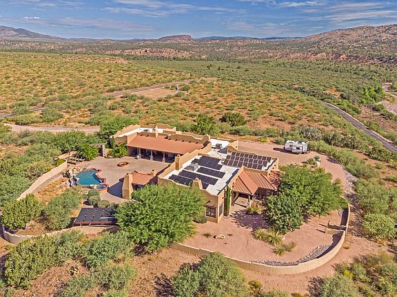One of a kind property less than 30 minutes south of Payson is situated on 10+ acres bordering national forest. This 6000'+ Southwestern style home has 4 bedrooms, 6 Baths, attached guest house with its own two car garage. Oversized three car garage plus storage area for main residence. Large Courtyard with infinity pool, outdoor kitchen w/ pizza oven. Misting system on covered patios. 360 degree panoramic views of the Arizona high desert and mountain! Commercial back up generator, brand new solar panel system with no payments or lease. The list of amenities goes on and on! Call today for your private tour of this gorgeous property in the heart of Arizona!