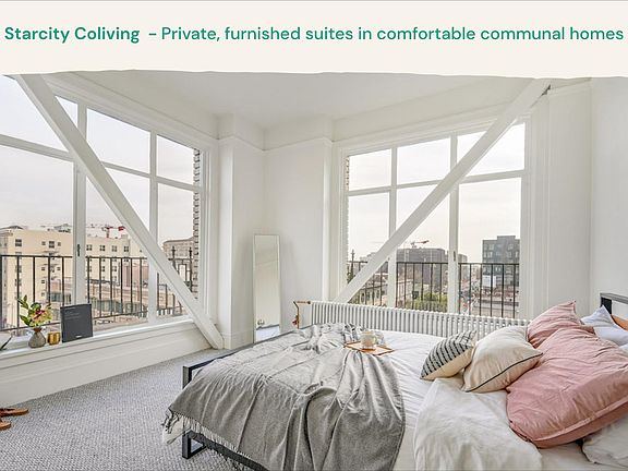 Just opened in Downtown Oakland- a new coliving community from Starcity! Experience living in the heart of Oakland surrounded by art, culture, and some of the most happening nightlife the Bay Area has to offer. Hop on over to Lake Merritt for a sunny Sunday picnic or jump on BART to be in San Francisco in under 20 minutes. Whether you're a commuter or a local, our Webster community has something for you. Our Webster community is housed in a historic landmark designed by renowned architect Julia Morgan. The first three floors are occupied by the Envision Academy, a charter school focusing on the arts. The top two floors are home to the 60 private suites that make up Starcity's first Oakland community, Webster! Each floor features a large industrial kitchens, two communal bathrooms with 4 shower stalls and 4 toilet stalls, and 2 stand alone bathrooms. So, what's coliving? Coliving is helping to bring community back to the city through homes intentionally designed for communal living. In our Webster community you'll find that the home is the perfect hangout spot with the large dining hall or top floor lounge and tv room. Monthly rent covers: - Your private room furnished a queen or full-sized bed, closet or wardrobe, nightstand, lamp, and rug - Well-equipped communal kitchens and dining areas - Daily housekeeping of communal areas (including cleaning and stocking all shared bathrooms!) - All utilities, including high-speed internet! - Washer and dryer - Sponsored community events The community is located next to everything you need. It's a commuter's dream being just blocks from both 12th and 19th St BART stations as well as the major East Bay AC Transit bus lines. Plus to make things easier, extra help like private room cleanings and additional furniture rentals are also available. Starcity's mission is to make great cities more accessible to everyone by creating comfortable community homes. Learn more about Starcity here: starcity.com