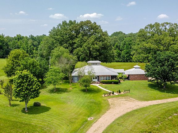 Gorgeous custom built property located just beyond town on 6.8 acres. Lovely landscaping, breezeway and large covered porch on the side. The home is complete with built in shelving, a gathering room plus a cozy family room area, soaring ceilings and a tremendous amount of natural lighting. There is an office with wet bar and a laundry room with a large hobby counter, The kitchen has beautiful granite counters, pretty backsplash, a wall oven and a gas cooktop. The Primary bedroom is quite large with a private screened back porch. The ensuite bath has a corner tub, double vanity, walk in shower, private toilet area, plus another walk-in closet. Originally there was a porch on one side and the owners took it in and made the huge closet in the primary bedroom and added an office, On the split side of the home is a bath and bedroom plus laundry room. The spiral staircase leads to one loft bedroom. In addition, there is a storage building. The covered side porch is huge with plenty of lush landscaping and room for rockers and swings. This home has as much storage all you will ever want. Call for your private showing. This truly is an estate. Professionally landscaping is in place and it is fabulous! Call your agent today to grab this one before it is gone!