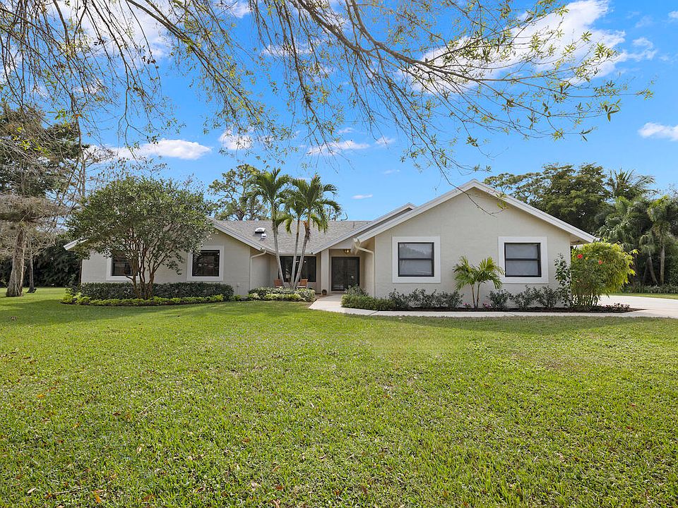 This is the one! This 4 bed 2.5 bath Meadow Wood home has Brand New Roof, New Impact Doors and windows, New Master Bathroom, New Paint (inside and out). The kitchen was remodeled a few years ago with new appliances. This house has a 2.5 car garage and large driveway, and sits on a cul-de-sac with an oversized yard, and backs to the 2nd hole of Wanderers Club Golf Course. Meadow Wood is a low HOA, with only one payment of $178 year. The neighborhood is zoned for the best schools in the county, and everything is golf cart accessible. Close to equestrian facilities, shopping and dining.