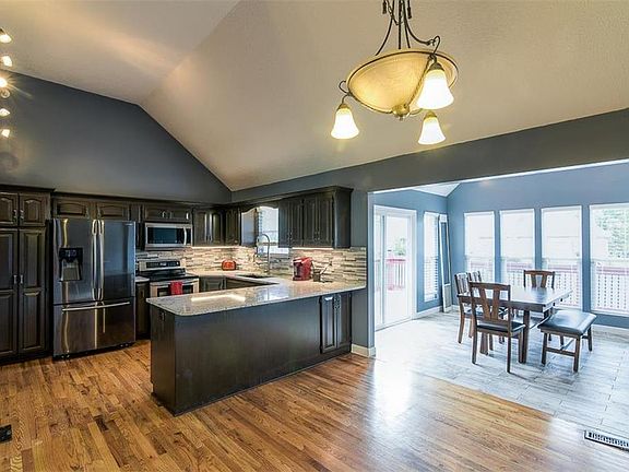 Perfectly well maintained home in the heart of Raymore. Easy access to highway and stores. Huge updated kitchen with granite, new backsplash, and deep sink. Tons of room for entertaining in this home. Finished sun room/dining area with tile floors. Walk out to a wrap around deck with a flat yard. Good size master bedroom and updated master bath. Updated floors and hall bath. Finished walkout basement with nice covered patio. This home is in great shape and ready for a new family.