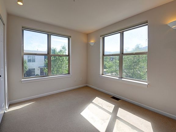 Beautiful gourmet kitchen with all GE profile appliances, cherry cabinets, & large butcher block top island. Bamboo floors throughout main living area with wool berber carpet in bedrooms & tile floors in the two full bathrooms. Fenced in back patio. Spacious open floor plan with lot's of natural light & view overlooking the community garden with upstairs views of the Flatirons. Double walls & floors for quiet living. 1 car, reserved parking spot. ECO pass included with rent!