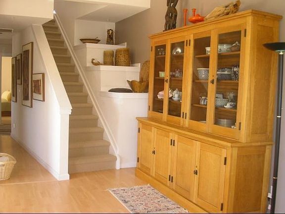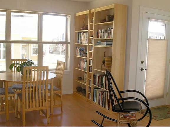 Beautiful gourmet kitchen with all GE profile appliances, cherry cabinets, & large butcher block top island. Bamboo floors throughout main living area with wool berber carpet in bedrooms & tile floors in the two full bathrooms. Spacious open floor plan with lot's of natural light & view overlooking the community garden with upstairs views of the Flatirons. Double walls & floors for quiet living. 1 car, reserved parking spot. ECO pass included with rent!