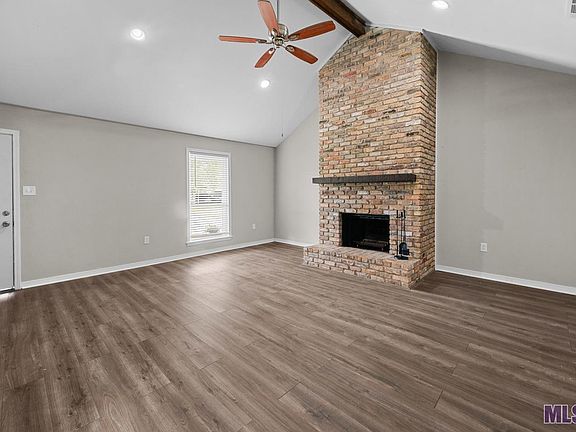 This classic Acadian-style home, located in the heart of the new City of St. George within the desirable Old Jefferson Subdivision, blends timeless charm with modern upgrades and exceptional curb appeal. The entire interior and exterior have been freshly repainted with premium Sherwin Williams paint, giving the home a fresh, updated look. The front porch, featuring brand new posts and custom landscaping, welcomes you into a warm space. As you enter, you’re greeted by an impressive brick and hearth wood-burning fireplace with a custom mantle, creating a cozy focal point in the living room. The kitchen has been updated with granite countertops and luxury vinyl flooring, offering both style and functionality. In the past year, the dishwasher, microwave, disposal, and faucet have all been replaced, ensuring a modern cooking space. The dining room is bright and airy, with windows overlooking the large backyard, making it ideal for family meals and entertaining. The master bedroom is a private retreat with a huge walk-in closet and an en suite bathroom featuring granite countertops and a custom tile shower. The additional two bedrooms are connected by a Jack and Jill bathroom, also with granite countertops and a tile bathtub/shower combination, providing comfort and convenience. Notable features include architectural shingles, a six-year-old A/C unit, main electrical panel, and double-pane tilting windows, all contributing to the home’s efficiency. The house is equipped with Ring exterior cameras and a perimeter security system for added peace of mind. A centrally located laundry room enhances the practical layout. Outside, there’s a storage room and a two-car carport, offering plenty of space for vehicles and tools. Situated just minutes from Woman’s Hospital, shopping centers, Interstates 10 & 12, and Prairieville, this home offers both convenience and tranquility. With its move-in-ready condition and charming character, this gem is ready for its next owner!