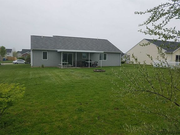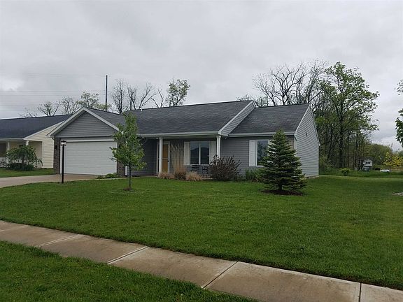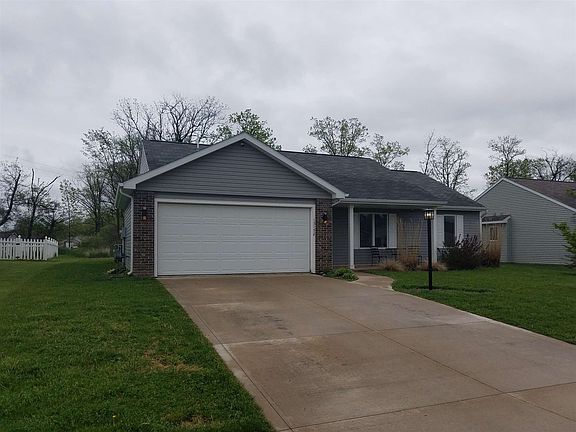 Hurry!!! Come take a look at this wonderful home that has great views out back from the covered patio overlooking the private wooded commons area behind the home. You'll love the sunsets sitting on the front covered porch. This is a great floor plan with the Kitchen opening into the Dining Room and the split bedroom layout with the Master Bedroom privately located away from the other bedrooms. Spacious Great Room with a cathedral ceiling and a gas log brick fireplace. Lots of updates in the last few months includes; new carpet, interior paint, plugs and switches, L.E.D Lighting throughout, Push Button Toilet and Motion Activated H.D. Security Cameras and Recorder. Nice Garage with shelves that remain and a work bench that doesn't remain. High Efficiency Furnace. Refrigerator, Range/oven, Microwave and Dishwasher remain with the home.