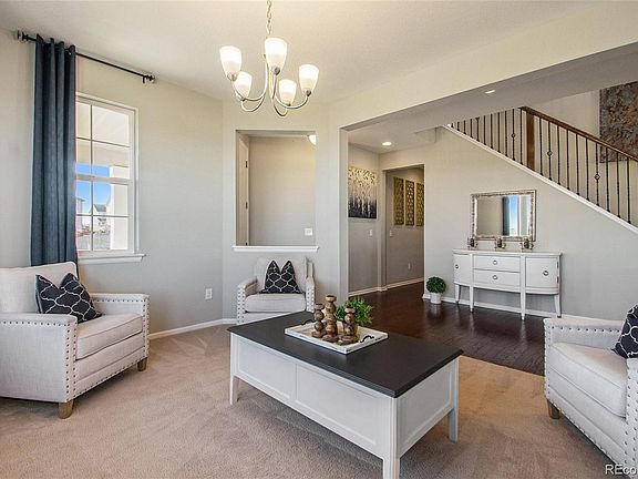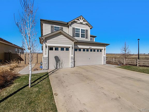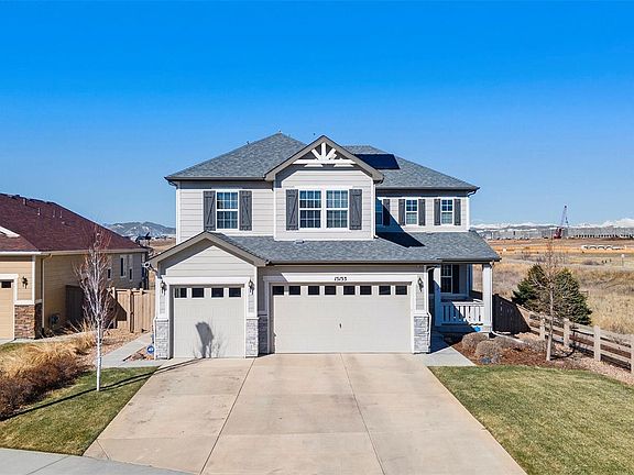 Prime location meets luxurious living in this exquisite 5-bedroom, 3-bathroom home, nestled against open space with panoramic mountain vistas. Step into a haven of elegance and comfort, where the open floor plan and abundant natural light beckon you inside. Every detail speaks of refinement, from the gourmet kitchen featuring a sprawling 6 x 9 ft granite island, farmhouse sink, and top-of-the-line appliances, to the expansive great room with a cozy gas fireplace and adjoining sunroom boasting breathtaking views. The main level offers versatility with a bedroom with walk-in closet that also would make an ideal office space, accompanied by a full bathroom and living area. Upstairs, discover the indulgent primary suite, complete with a lavish five-piece bath, dual walk-in closets, and uninterrupted mountain panoramas. Three additional bedrooms, one with its own walk-in closet, a generous loft area, and convenient upstairs laundry complete the upper level. Step outside to a professionally landscaped backyard oasis, where a covered patio provides the perfect spot to relish Colorado's stunning sunsets. Not only is this home energy efficient but it comes with solar! Save $$ on your electric bill. With upgrades including top-down bottom-up blinds, 9ft ceilings, and dual HVAC systems, this home effortlessly combines luxury and functionality. Large 3 car garage and unfinished basement provide a lot of ample storage. Located in a desirable neighborhood with a park and playground. Open space behind is a permanent bird and wildlife habitat. Adams 12 school district with Stargate K-12 within walking distance. Close to shops and dining, enjoy easy access to Denver, Boulder, and DIA, making this property the epitome of elevated living.