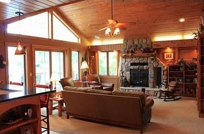 Enjoy sunsets over Bay lake. This home features new paint, carpet 2 fireplaces and a 1 bed 1 bath guest house. Spacious deck and landscaping. The kitchen is fully applianced with stainless and granite.