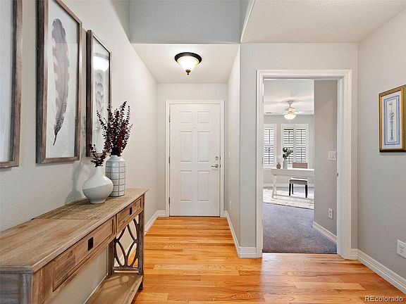 Move into this beautifully maintained townhouse in the Heritage Todd Creek. This home offers views overlooking the 3rd hole of Todd Creek Golf course and backed no one! Lovely home has 2 beds/2 bath and 2 car garage all offered on one level. As you enter you will immediately be welcomed to a bedroom and a full bathroom. Open floor plan with vaulted ceilings throughout the living room to the dining space and kitchen. Relax in front of the gas fireplace in the living room or cook up a fine meal in the kitchen with a gas range, complete with cherrywood cabinets, granite counters, and breakfast bar. Spacious primary bedroom suite with walk-in closet and ensuite bath featuring dual vanities and ceramic tile flooring also walk-in shower. Witness sunsets and enjoy the shade of the mature trees as you relax under covered patio with a mini bridge leading you out to grass area requires no maintenance. Take advantage of Heritage Todd Creek’s resort-style living, with a clubhouse that offers many amenities, such as a restaurant and club activities, as well as recreation including indoor/outdoor pools, tennis and pickleball, fitness center, and gathering places to socialize with friends and neighbors. Close to restaurants and shopping, E-470 and I-25, this home and community have it all!