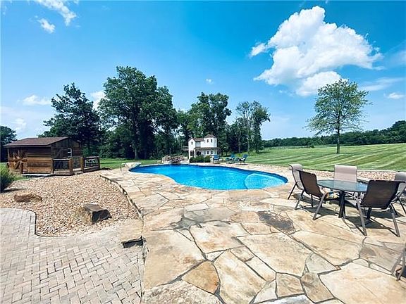 Don't miss this stunning property right off blacktop! Nearly 30 acres of land surround this one of a kind home that features 4 bedrooms, 4 bathrooms, & beautiful touches like crown molding, a fully finished basement with kitchenette, and laundry rooms on both the main level and basement. Other amenities include a water filtration system that is managed by Culligan 4 times a year, a whole home intercom system, and a 2 year old roof. The property includes a sparkling in-ground pool, a pump house for the pool, 30 x 30 outbuilding with concrete floor, a playhouse that is heated and cooled, and a fully stocked 1 acre pond. This property is truly a one of a kind oasis and won't last long!