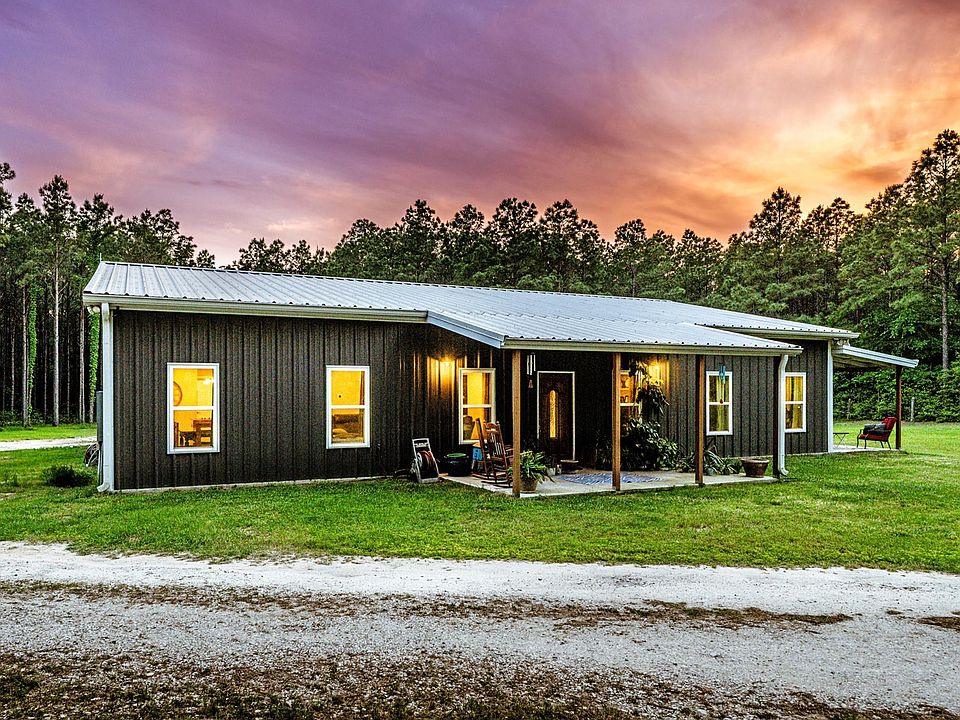 Surrounded by 3.12 acres of tranquil pine trees, this custom 2,400sf home offers the perfect blend of contemporary design and rustic charm. With 4 spacious bedrooms and 2.5 bathrooms, this thoughtfully designed residence delivers comfort, style, and space. The open-concept living area feels inviting and expansive—ideal for hosting gatherings or enjoying quiet nights in. The kitchen features a large granite island with bar seating, an electric cooktop, and sleek stainless steel appliances. Each bedroom is generously sized, with ensuite access for added privacy and convenience. The primary suite is a true retreat, boasting a spa-inspired bath with a large tiled shower, soaking tub, and an impressive walk-in closet. Working from home? A private office space provides a quiet spot for productivity or study. Enjoy the outdoors with 3 covered porches and a spacious deck. The property also includes two additional storage buildings. Escape to the peace and freedom of rural living.