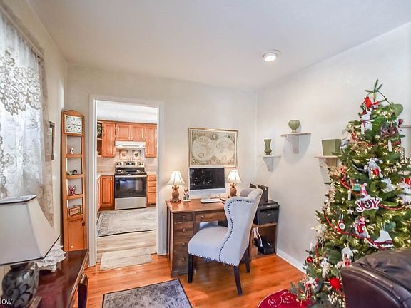 Don't be fooled, this charming bungalow surprises with more space than you imagine ! Step inside to a bright living room where gleaming hardwood floors flow under recessed lighting, creating a warm and inviting space. The kitchen is a delight for any home chef, boasting tons of gorgeous wood cabinets, expansive countertops, and new vinyl plank flooring that seamlessly flows into the dining room. Down the hall, you'll find two generously sized bedrooms with ceiling fans for year-round comfort, both conveniently located near the updated full bath. Head upstairs to discover a bonus third bedroom with good ceiling height and a charming dormer window, perfect for a private guest room or home office. But the space doesn't stop there – a full basement offers endless storage possibilities and a dedicated laundry area. Outside, mature landscaping creates a picture perfect curb appeal, while the private backyard with a patio invites you to relax and unwind. And for all your parking needs, there's a detached garage with an attached carport – the perfect finishing touch! This beautifully maintained home boasts a newer roof, furnace, and replacement windows, ensuring peace of mind for years to come. Don't miss your chance, call to take a tour today!