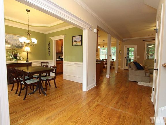 GUEST SUITE Down. Rocking chair cvrd front porch.Hdwds-main living areas. Din: Crown molding,trey clg,picture framing. Fam:crown molding, column accents,Direct Vent Gas FP w/logs. Kit:Crown molding, granite, tile backsplash, island/breakfast bar, cherry look cabinetry,soft close piston drawers,can/pendant lighting. Mstr: Spacious w/Walk In Closet, clg fan/light, separate vanities,corner tub w/tile surround, 5' separate shower,linen closet&sep. toilet closet. Relaxing Screened Porch.Garage w/Epoxy flooring