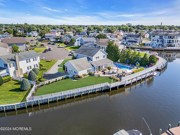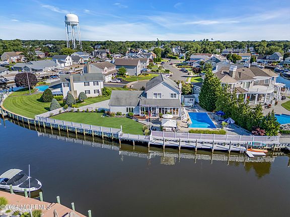 Unique waterfront sanctuary in the Laguna Village section of Bay Head Shores with over 170 ft of bulkhead at the ''T'' of the lagoon. The expansive living space with a coastal vibe boasts hardwood floors & custom woodwork. Kitchen, den, & family room w/gas fireplace & bult-ins all have water views. A sunroom w/gas fireplace connects to the outdoors w/Ipe decking & French doors. 1st floor also includes dining, living room, & full bath. 2nd floor has 4 bedrooms including the primary w/ensuite private bath & dressing area. The resort-like backyard has an inground heated pool, hot tub, firepit, shed, outdoor shower, & built-in bbq w/granite bar. Dine or entertain on the paver patio plus a lawn area for recreation. Large composite dock w/electric & water awaits your boat & water toys. Direct access to open waterways - Barnegat Bay, Metedeconk River, & Manasquan River to Atlantic Ocean. Optional membership to Bay Head Shores Assn for socials, bayfront clubhouse & beach.