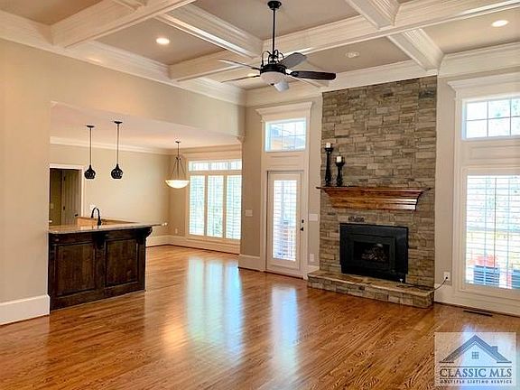 Prime location in the North Oconee award winning school district! Located in Fern Hill, next to Malcom Bridge Elementary and Middle Schools. Custom built home by Rodney Jones. Located on 1.5 acres with creek and situated in a cul-de-sac! This amazing one level open split bedroom plan offers three bedrooms and 2.5 baths on the main, open dining room with tray ceiling, plus a huge private suite and bath with walk-in closet upstairs. Large kitchen with stainless steel appliances, tile backsplash, custom cabinetry, and granite wrap around bar overlooking breakfast area and coffered great room with raised ceiling with stack stone fireplace with gas logs. Large master suite with tray ceiling, custom oversized walk-in shower with tile and frameless glass door and two shower heads, enormous raised vanity and large walk-in closet. Tray ceiling in secondary bedroom is connected to Jack and Jill bath with walk in closet can also be used as an office. The open terrace level offers rec room with pool table, huge family room wired for 7.1 surround sound, full bath, and possible fifth bedroom or exercise room. Lots of storage including double doors giving access for a shop. Extras include: amazing trim package throughout home-Must see!!, 3 in. plantation shutters throughout main level, framed mirrors in all baths, oversized flagstone front porch with cedar columns, wide plank refinished hardwood floors, new interior paint throughout, transoms throughout and full length windows, insulated two car garage with wainscoting, laundry room with custom cabinets and sink, two hot water heaters plus and hot water circulation pump, professionally landscaped with split rail fence and irrigation, CAT 5 wiring, and more! Close to shopping, restaurants, UGA, and pager range to hospitals. Agent/Owner.
