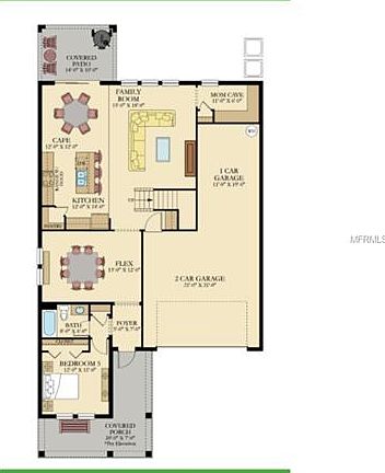 This spacious home covers two stories and includes five bedrooms, three bathrooms and a three car garage. Families will love the ample living space provided by the large family room and flex space located off the foyer. The kitchen features a breakfast nook and overlooks the covered patio. There is also an office and a game room.