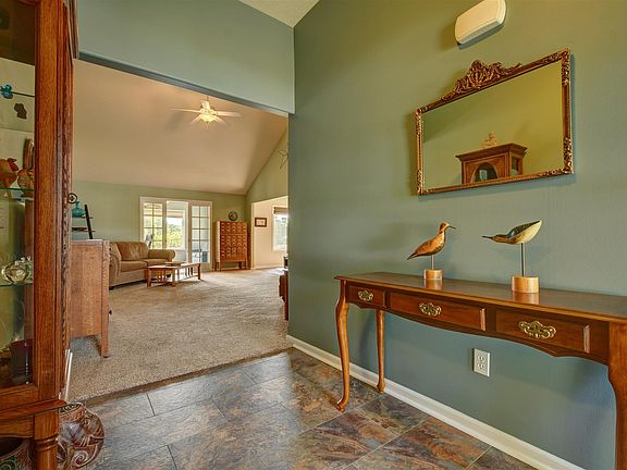 Contingency - Accepted offer, but the seller is accepting back up offers. First impression: Great space and location! Wide foyer, spacious family room with cathedral ceiling and view / sight lines all the way to the back of the sunroom with a wonderful view of the pond outside! That's what your family and friends will see when they visit! If you're being practical, after you drive into the 2 car garage, you can take your groceries directly into the kitchen. A large pantry provides lots of storage! You can enjoy coffee or a break at the breakfast bar or you can choose to sit at the open dining area table and enjoy the backyard view and pond. The year-round sunroom provides a wide variety of options as to how you would use and decorate it. Like nature and wildlife? The backyard view is spectacular! Sliding pocket doors allow you to close them for peace and quiet or leave open. The large master bedroom features an en-suite with walk-in closet, lots of floor space and linen closet in the vanity area and a larger shower. Make sure to check out the view overlooking the patio with pergola! The second bedroom has a walk-in closet and a window seat that adds a nice cozy feature! With an additional full bathroom with a tub/shower combination very close by, this is convenience at its best! Additional information: Anderson windows, pull-down stairs in garage, includes refrigerator, gas range, hood, dishwasher, microwave, water softener, water heater. Carpet & flooring installed about 5 years ago. Enjoy the "no bump" driveway apron! Water filter at kitchen sink.