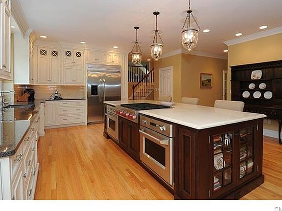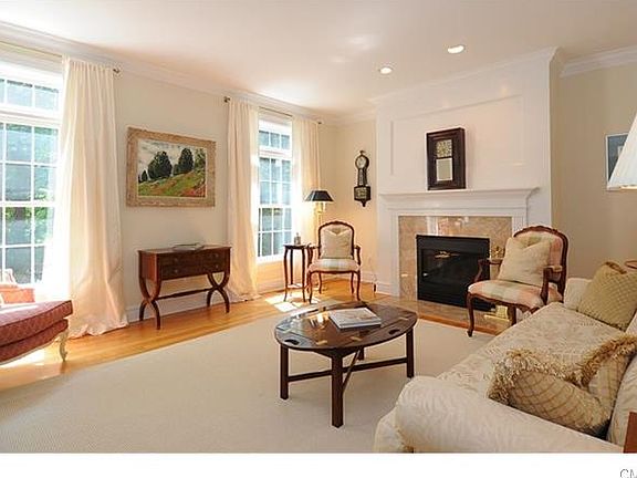 Down a long private drive, sits this picture-perfect 5 bedroom, 4 full/2 half-bath colonial home, impeccably maintained, professionally designed & updated. Custom architectural details & high-end finishes are abound, with spacious rooms on each of its 4 levels. A dramatic foyer welcomes guests and opens to both dining & living rooms. A stunning dream kitchen is the heart of the home, featuring custom cabinetry, marble countertops, oversized island, high-end appliances, walk-in pantry, beverage bar, & entertaining pantry. A large breakfast area flows into the family room, made cozy by a full-height fieldstone fireplace, while the open layout feels light & airy thanks to abundant oversized windows inviting you outside to the picturesque grounds. Upstairs, a welcoming bedroom suite offers itself as a calming retreat, complete with a fireplace, vaulted ceiling, walk-in closets, & spa bath. Down the hall are 3 en-suite bedrooms & a private guest suite on the third floor. On its own landing, a playroom/great room is steps away from the kitchen. A finished lower level adds 1000 sf and provides even more space for play, exercise, & entertaining. A laundry room, convenient mudroom entry, & 3 car garage complete this functional, thoughtfully designed home. Privately sited on 2+ park-like acres, this property is a true sanctuary, yet only 10 minutes to train, town, beach, & more. Access to The Ridge amenities include pool, tennis, clubhouse, & recreational/social offerings.