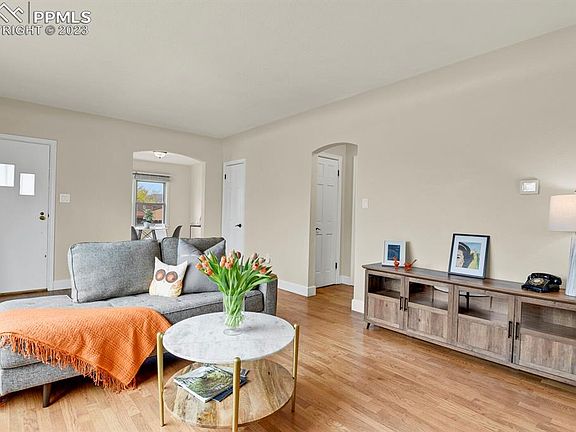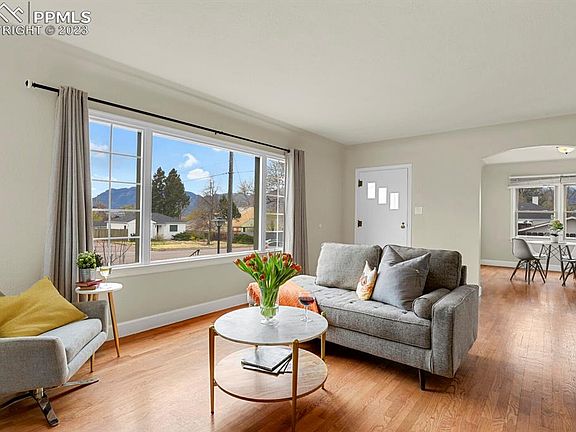 This charming ranch level home is situated on a corner lot with a fully fenced in yard & alley access. Enjoy living in the desirable Divine Redeemer neighborhood with mature tree lined streets & taking advantage of the covered front & back porch. This charming property has stucco exterior, s fully fenced in lot & alley access. Concrete patios & a well thought out extra parking spot next to the one car detached garage for RV parking or extra off street parking. The home has unique characteristics from the 1940's with coved ceilings in the living/dining rooms, custom details surrounding the fireplace, original hardwood floors & kitchen cabinetry. Main level features an oversized living room with large picture window, separate dining area, full bath, two ample sized bedrooms & kitchen with an eat in breakfast nook. Kitchen has updated countertops, stainless steel appliances with a gas range, portable dishwasher & original kitchen cabinetry with new hardware. Lower level has an oversized laundry/storage room with an updated 3/4 bathroom, additional bedroom & family room with a second kitchen. Lower level could be used as a mother in law quarters. Property updated vinyl windows, updated vanities in both bathrooms, updated flooring in baths, & updated tile surround in 3/4 bath. Conveniently located to parks, schools, Olympic Training Center, hospitals, downtown, walking trails, Shooks Run park, neighborhood coffee shops, hiking spots, neighborhood restaurants, shops ,Patty Jewett Golf Course, Palmer Park & Boulder Park. Some rooms are virtually staged