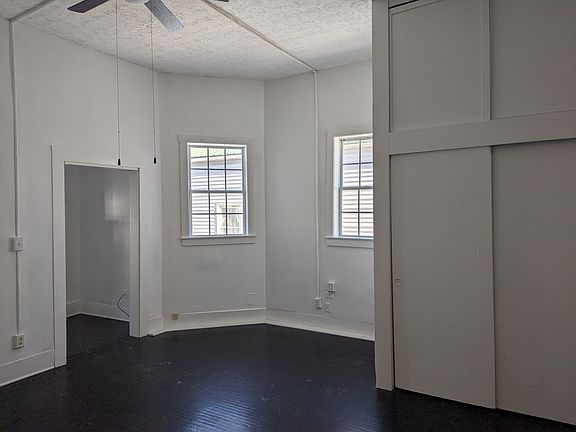 New kitchen cabinets, plumbing, and flooring, as well as fresh paint, new light fixtures, and plenty of other upgrades throughout. This unit has amazing 10' ceilings and great light. A great location in downtown New Albany, half a block from Vincennes and only 2 blocks from Spring St. means easy walking distance to food and shopping. Outside there is a shared front porch, as well as decent front and back yard spaces. Two shared off-street parking spaces in the rear besides plenty of additional street parking. Restricted front door access, as well as a private entrance in the rear. Inside, refrigerator and stove are both included, and there is a huge closet for the size of the unit. Hardwood floors through most of the unit with tile in the bathroom. If the current white paint doesn't excite you, never fear, we allow painting! It's possible shared laundry will be installed in this building in the future. If you are interested, please let us know. Floor plan included in images. Most pets will require a refundable deposit, which will vary based on the pet. For obvious reasons, loud pets are discouraged in apartment buildings. Tenant is responsible for all utilities. 12 month lease, security deposit is equal to one month's rent. Security deposit and full first month's rent due at move-in. $1,500 to move in not including application fee.