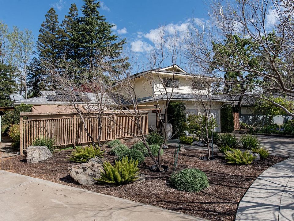 Approximately 1/4 acre cul-de-sac lot near CSU Fresno. Rare opportunity to find a home in this ideal location on this spacious lot. Enjoy the move-in ready home w/OWNED SOLAR, new paint, new carpet, and new tile in bathrooms. Walk into this amazing home with 2 living spaces, one has bamboo flooring and overlooks the private garden, another living room boasts a gas fireplace that has a blower and heats the space very efficiently. There is a separate office and 3rd bathroom downstairs as well. Upstairs you will find all of the bedrooms and 2 full bathrooms. Take advantage of the solar panels and storm windows. Outside provides a work area for the craftsman of the family and a green house too. The front deck is another ideal space with the gorgeous Koi pond. This charming home will provide a place for many gatherings with family and friends.